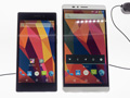 前面は5インチフルHD有機EL(左図)、背面は電子ペーパー(右図)のYotaPhone 2