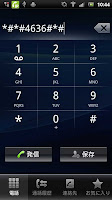 ▲[電話]で「*#*#4636#*#*」と入力すると(左)、隠しメニューが現れる(中)。