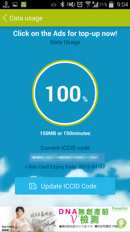 i-Simは受け取った時点で、APN設定などを行えばデータ通信が利用可能となります。ただし、専用アプリから広告表示を行わないと、利用可能なデータ通信量が減っていってしまうので、空港から市内への移動中などに通信量残高をチャージしていくことをオススメします。