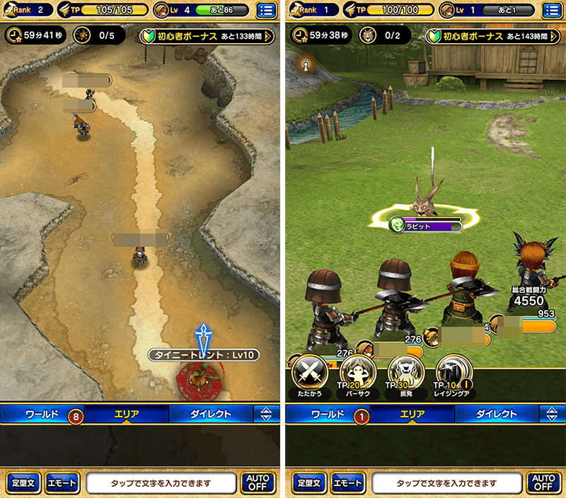 フィールドは自由に動き回ることができ、他のプレイヤーとチャットすることもできる。