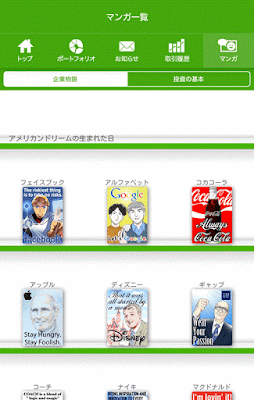 アプリ内の「マンガ」を読んで株式投資の基本を学ぶことも可能で、「株式投資に少しでも興味がある」という方は是非一度ご利用になってみてはいかがでしょうか。